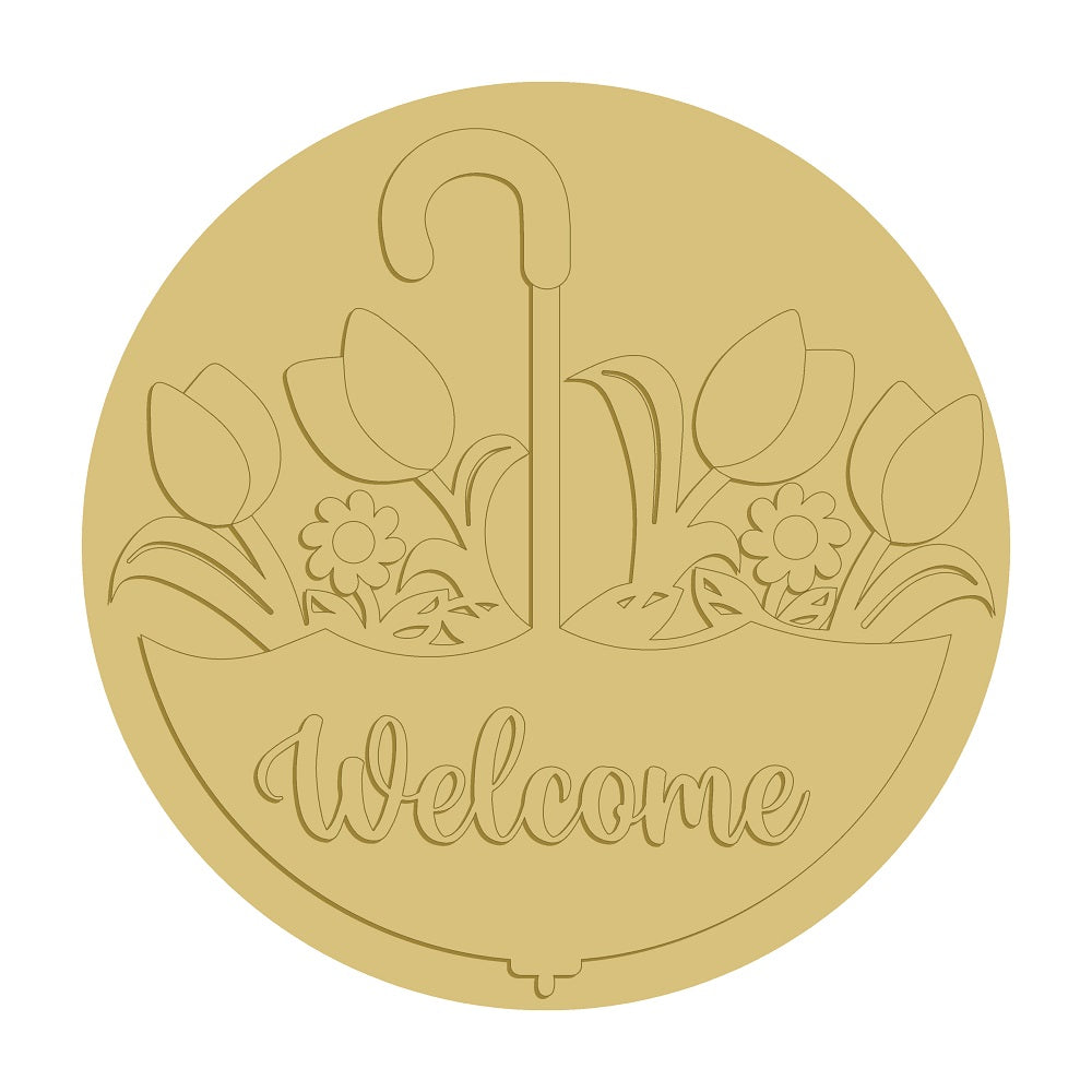 3D Round MDF Cutout Umbrella With Garden Flowers And Welcome Word - Unfinished For DIY