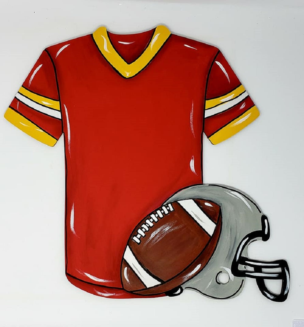 Design By Line Jersey MDF Cutout Football Helmet And Ball - Unfinished For DIY
