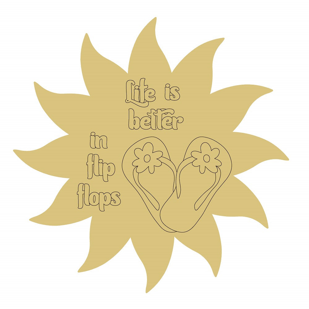 Design By Line Sunburst MDF Cutout Life Is Better in Flip Flops, Silhouette - Unfinished For DIY