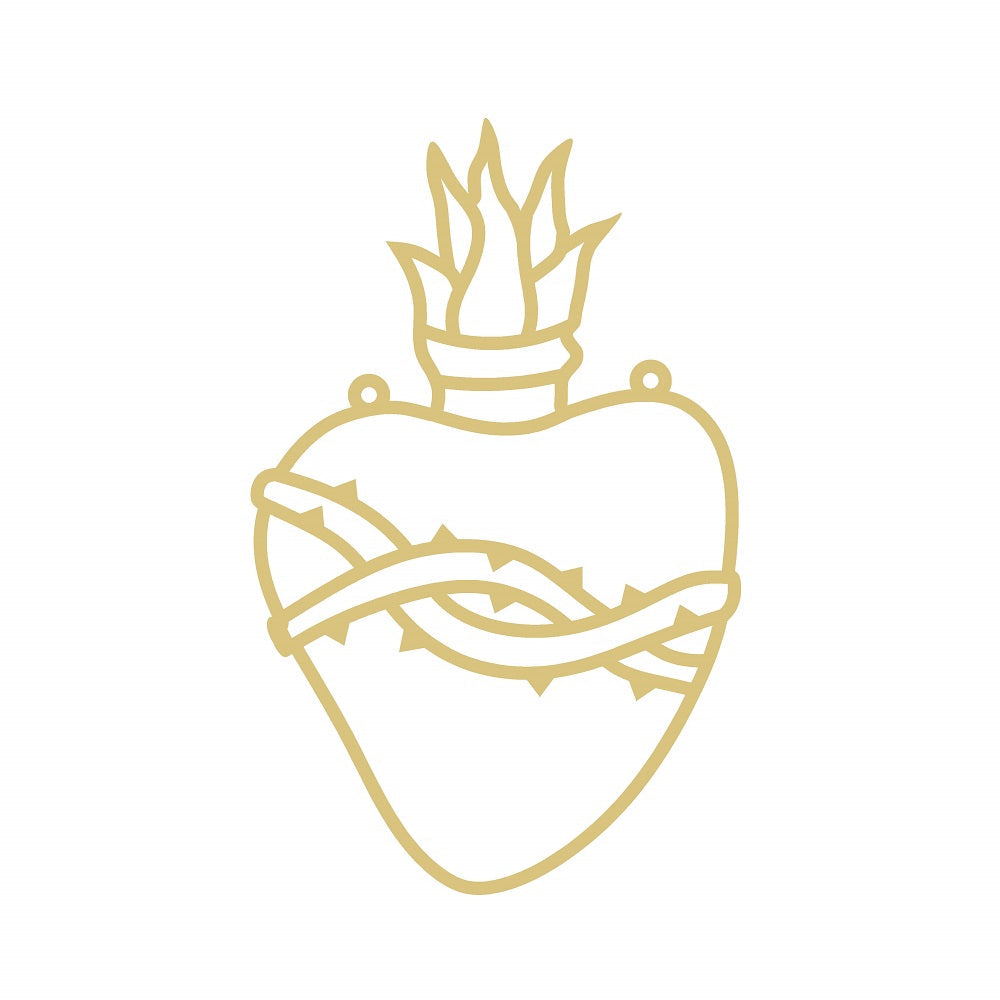 This unfinished MDF cutout features a heart shape with a flame-inspired top and a decorative thorn band design, making it a striking base for creative DIY projects. Crafters can transform this blank canvas into personalized wall art, door hangers, or porch signs by adding paint, decals, glitter, or other embellishments. Its intricate design lends itself well to custom stained glass effects or mixed media art, providing a versatile foundation for expressing individual style or creating heartfelt gifts. Whether used for seasonal decor, wedding themes, or everyday home embellishments, this laser-cut craft piece helps turn ideas into personalized masterpieces.