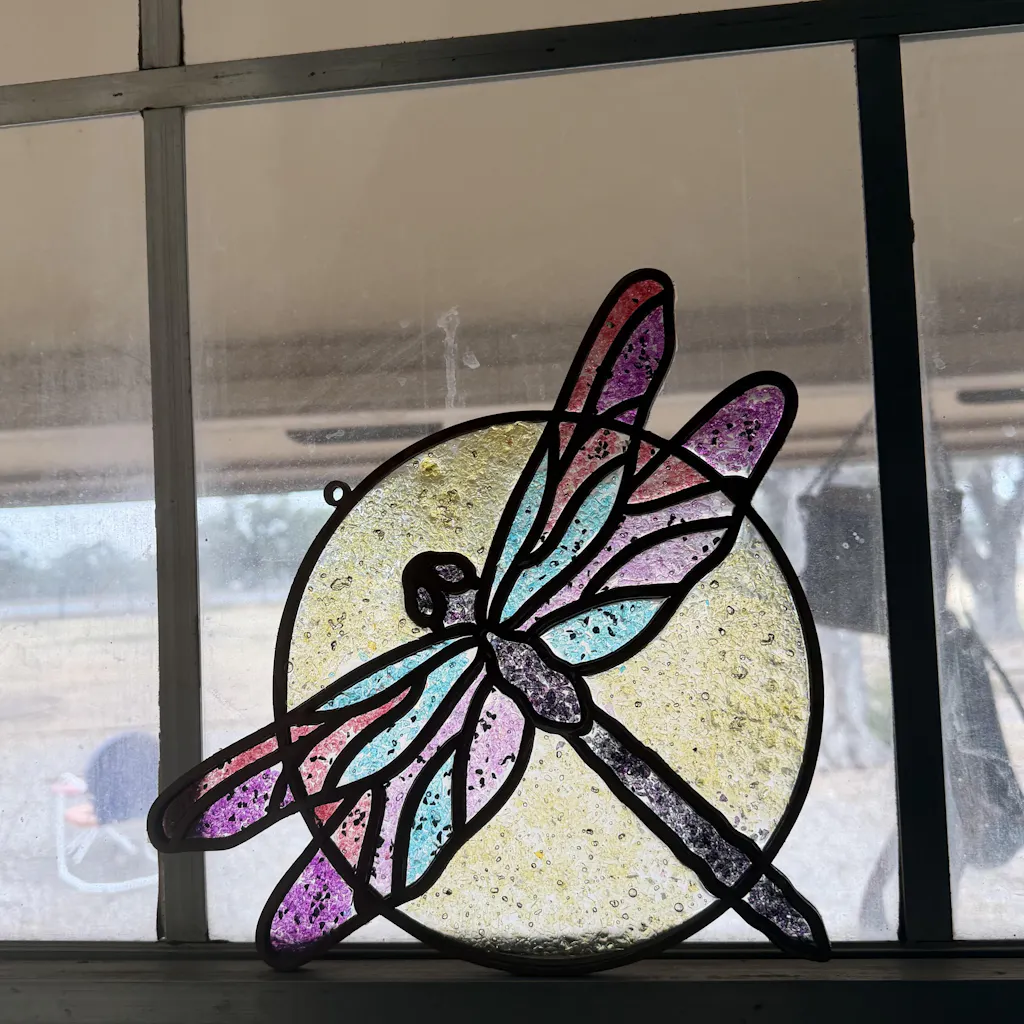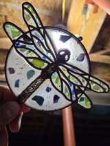 Faux Stained Glass Laser Cut MDF Cutout Dragonfly Circle Dragonfly Line Art Inside Circle - Unfinished For DIY