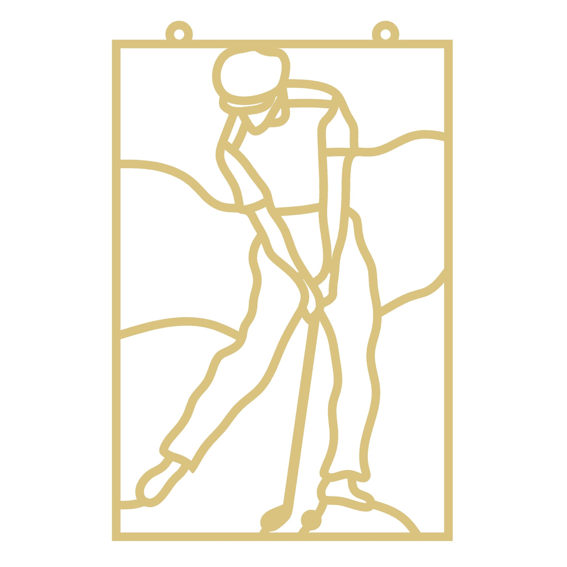 A specially designed craft blank made from high-quality MDF, this laser-cut silhouette features a golfer in mid-swing, perfect for enhancing DIY décor projects. Its versatile unfinished surface invites creative customization, making it ideal for painting, embellishing, or integrating into mosaic art. Use it as a distinctive accent on porch signs, door hangers, or personalized sports-themed gifts. Crafted with precision and made in the USA, this cutout serves as an excellent foundation for adding your own artistic touch to indoor or outdoor décor, or as a unique element in craft projects for all skill levels.