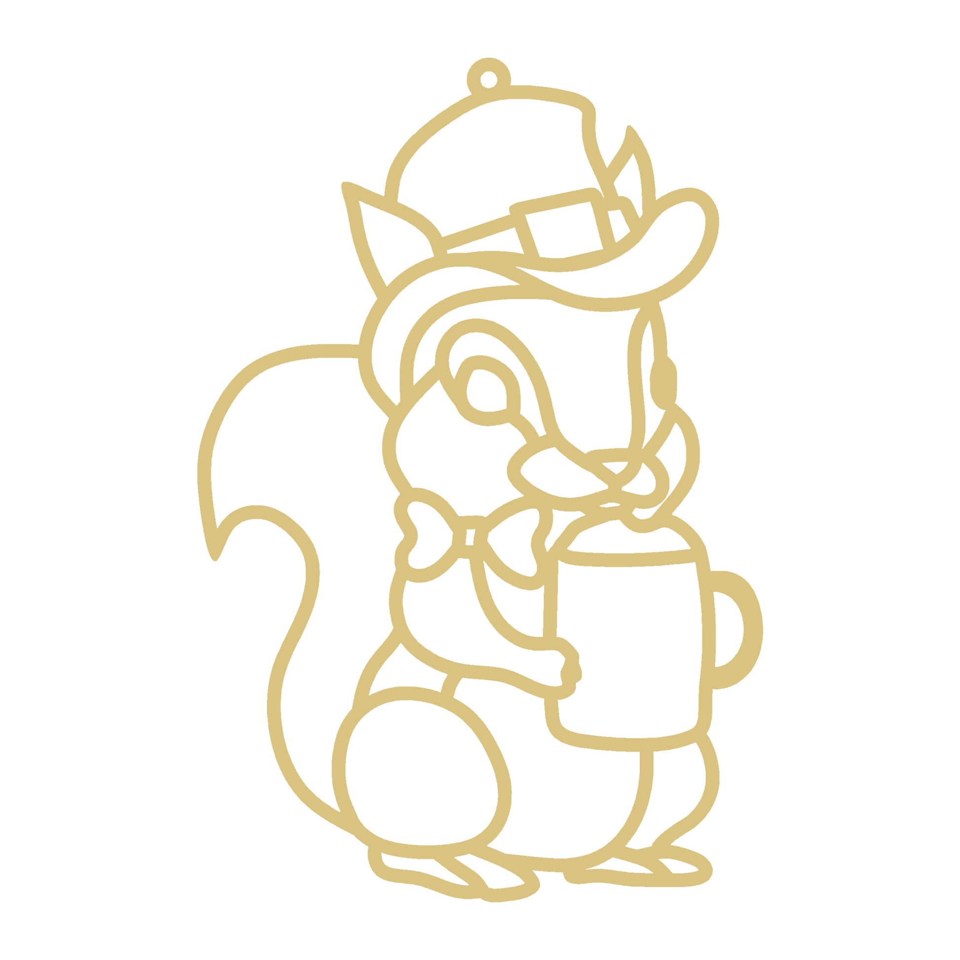 • Adorable woodland squirrel with hat, bow tie, and mug
